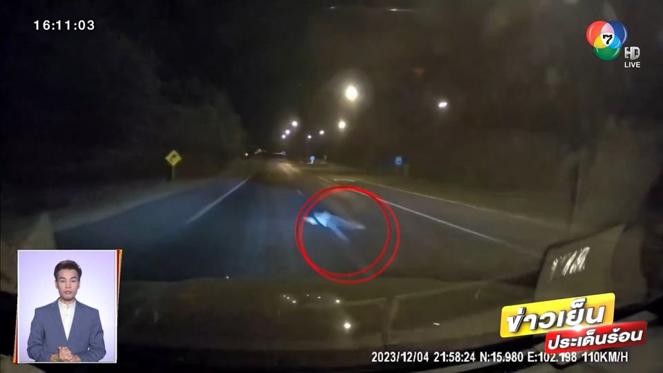 ข่าวเย็นประเด็นร้อน - ไปดูวินาทีเฉียดตาย เมื่อมีชายคนหนึ่งลงไปนอนอยู่กลางถนน รถสองคันวิ่งผ่านมา โชคดีที่หักหลบได้ทัน แต่พอจอดลงมาดู ชายคนนั้นกลับวิ่งหนีเข้าป่า