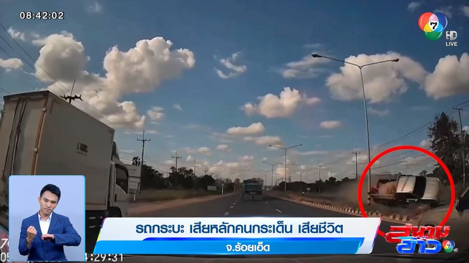 รถกระบะ เสียหลักคนกระเด็น เสียชีวิต จ.ร้อยเอ็ด