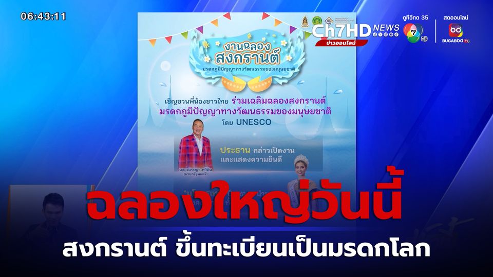 เช้านี้ที่หมอชิต - ข่าวดีรับนโยบายซอฟพาวเวอร์สงกรานต์ทั้งเดือนของคุณอุ๊งอิ๊ง นายกฯ เตรียมนำฉลองใหญ่วันนี้ที่ลานคนเมือง หลังยูเนสโก ประกาศขึ้นทะเบียน สงกรานต์ เป็นมรดกโลก ด้านวัฒนธรรมที่จับต้องไม่ได้ของมนุษยชาติ