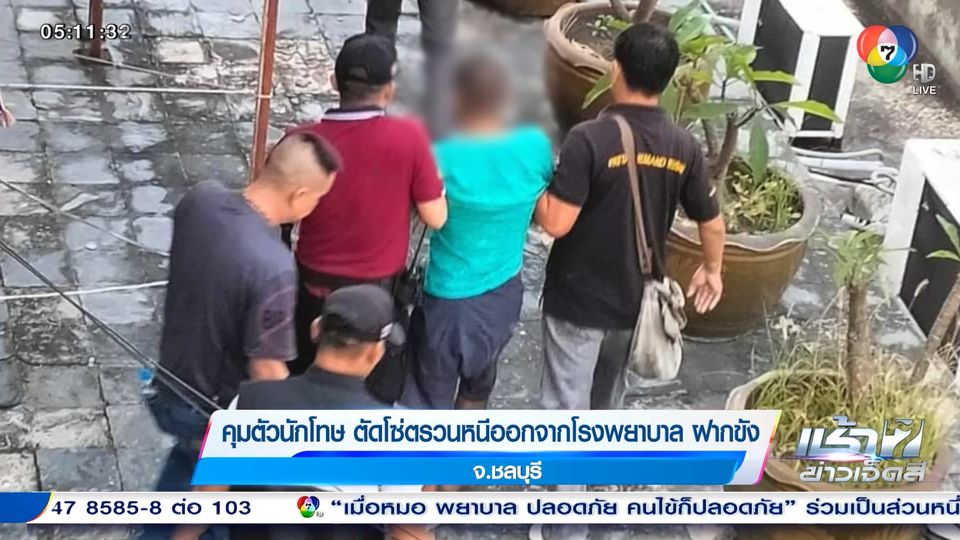 เช้าข่าว 7 สี - ส่วนคดีนักโทษ ที่แอบโทรศัพท์ให้ภรรยานำคีมตัดเหล็กมาตัดโซ่ตรวน หนีออกจากโรงพยาบาลบางละมุง จังหวัดชลบุรี หลังถูกตำรวจจับกุมได้ก็คุมตัวไปทำแผน โดยเจ้าตัวรับว่าทำไปเพราะคิดถึงลูก และภรรยาก่อนคุมตัวทั้ง 2 คน ฝากขังดำเนินคดี