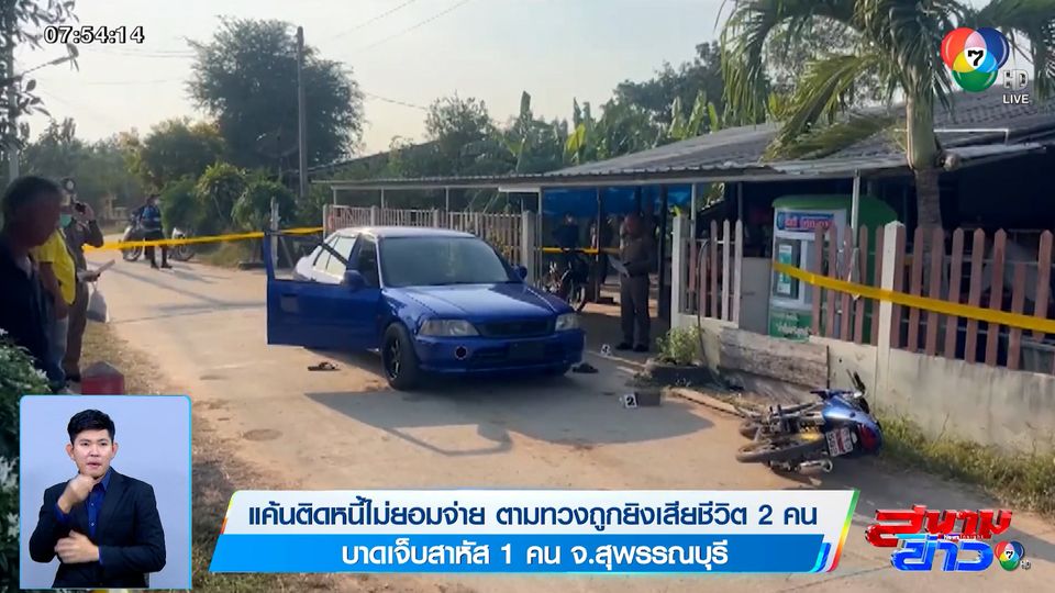 สนามข่าว 7 สี - ต้นเหตุจากเรื่องติดหนี้เล่นการพนันกันแล้วไม่ยอมจ่าย ทำให้อีกฝ่ายแค้นจัดพาพวกบุกมาตามทวงถึงที่บ้าน ปะทะคารมกันบานปลายถึงขั้นชักปืนออกมายิง ทำให้มีผู้เสียชีวิต 2 คน ส่วนอีกคนบาดเจ็บสาหัส