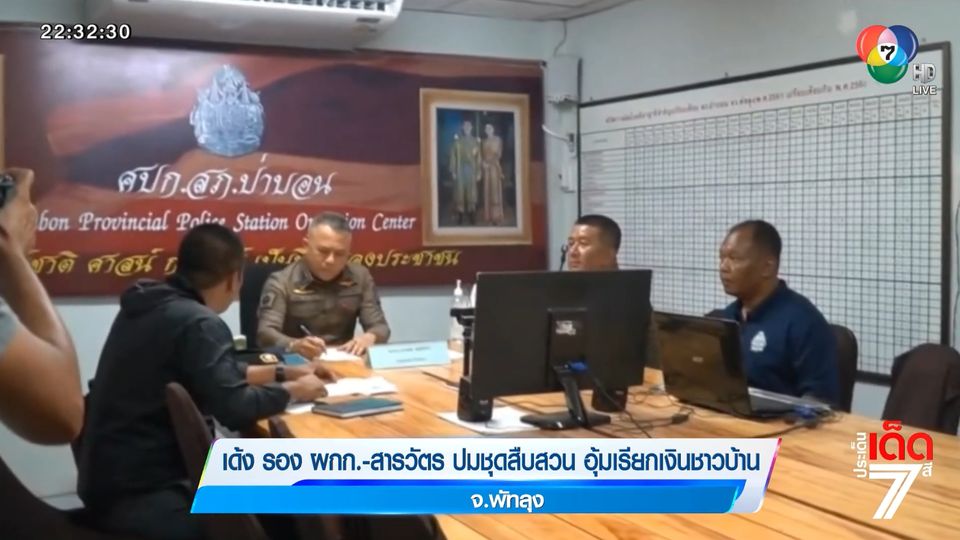 ประเด็นเด็ด 7 สี - ผู้บัญชาการตำรวจภูธร ภาค 9 สั่งตั้งกรรมการสอบตำรวจ ชุดสืบ สภ.ป่าบอน 5 นาย กรณีอุ้มชาวบ้านเรียกเงิน 50,000 บาท แลกกับการไม่ดำเนินคดีปืนเถื่อน พร้อมสั่งพักราชการ และย้ายไปช่วยราชการที่ตำรวจภูธร ภาค 9 ส่วน รองผู้กำกับการสืบสวน และ สารวัตร ให้ไปช่วยราชการที่ตำรวจภูธรพัทลุง