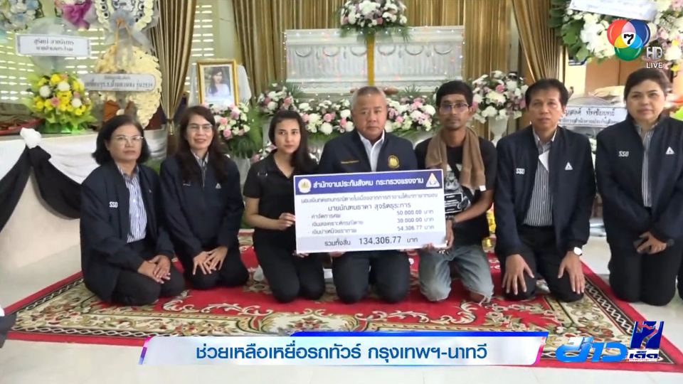 ข่าวเด็ด 7 สี - เลขาธิการสำนักงานประกันสังคม ลงพื้นที่ไปยังจังหวัดพัทลุง นครศรีธรรมราช และสงขลา เพื่อช่วยเหลือเยียวยาและให้กำลังใจครอบครัวของผู้เสียชีวิต จากเหตุการณ์รถโดยสารปรับอากาศ กรุงเทพฯ-นาทวี เกิดอุบัติเหตุ เสียหลักตกไหล่ทางชนต้นไม้ที่บริเวณถนนเพชรเกษม ตำบลห้วยยาง อำเภอทับสะแก จังหวัดประจวบคีรีขันธ์ เมื่อวันที่ 5 ธันวาคม ที่ผ่านมา มีผู้เสียชีวิต 14 คน และบาดเจ็บ 35 คน