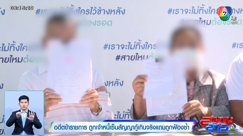 สนามข่าว 7 สี - อดีตข้าราชการทหาร 3 คน ไปร้องกับเพจสายไหมต้องรอด ว่าไปกู้เงินนอกระบบกับเจ้าหนี้ในองค์กรเดียวกัน แต่สัญญาเงินกู้ไม่เป็นธรรม กู้ 140,000 ต้องใช้หนี้ 500,000 แถมถูกเจ้าหนี้คนนี้นำสัญญาเงินกู้ที่เขียนเอาเปรียบลูกหนี้ไปฟ้องศาลฯ เดือดร้อนถูกอายัดเงินบำเหน็จ-บำนาญ ทำธุรการทางการเงินไม่ได้ จึงอยากออกมาเรียกร้องความเป็นธรรม