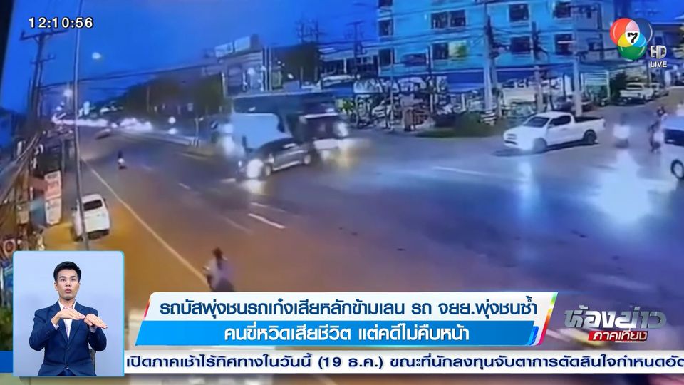 รถบัส เร่งเครื่องตามเข้ามาอีก คราวนี้ไม่เบรกหรือชะลอ ตั้งใจขับพุ่งชนเลย ภาพกล้องวงจรปิดอีกมุม ก็จะเห็นว่า จังหวะที่รถบัสพุ่งชน คล้าย ๆ กับรถเก๋งจะชะลอความเร็วเพราะเห็นว่าเข้าเขตชุมชนแล้ว แต่รถบัสเหมือนจะไม่ได้ชะลอความเร็วลงเลย ก็เลยพุ่งชนจนรถเก๋ง เสียหลักข้ามไปอีกฝั่งถนน ทำให้รถจักรยานยนต์ที่แล่นมา พุ่งชนเข้ากับรถเก๋งอย่างจัง