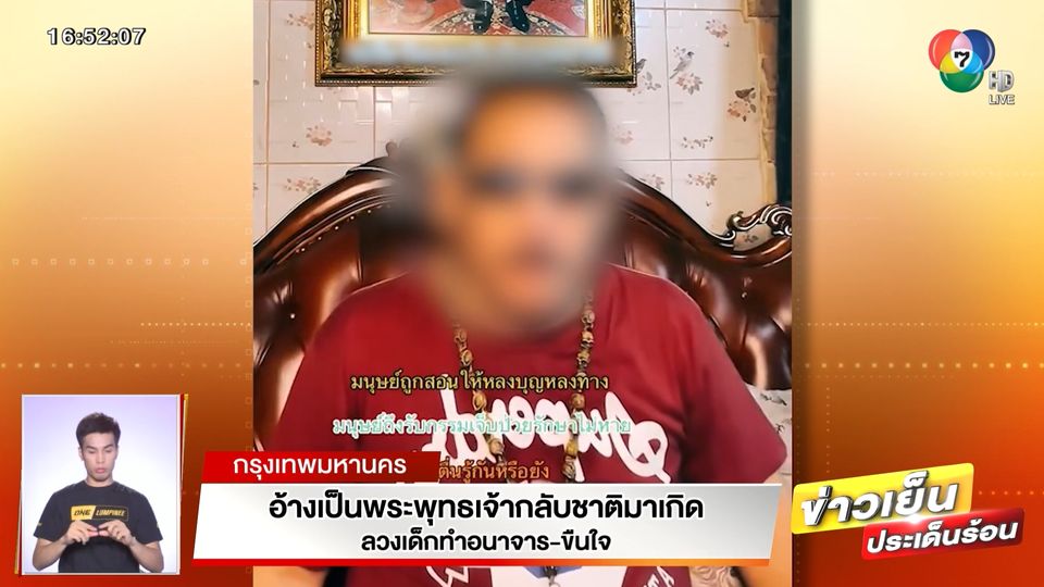 ข่าวเย็นประเด็นร้อน - ชายอ้างตัวเป็นพระพุทธเจ้ากลับชาติมาเกิด เปิดสำนักสอนธรรมะ นั่งสมาธิ ซึ่งเคยเป็นข่าวโด่งดังมาก่อน แต่ตอนนี้ถูกแจ้งความว่าลวงเด็กอายุ 6 ขวบไปทำอนาจาร ในสถานที่ที่เป็นตำหนักของตัวเอง อีกทั้งยังมีทั้งเหยื่อรายอื่น และลูกศิษย์ที่สงสัยในพฤติกรรม ออกมาเปิดเผยข้อมูลในมุมมืดเรื่อย ๆ