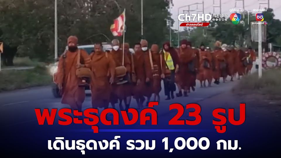 พระธุดงค์จาก 4 ประเทศ จำนวน 23 รูป เดินธุดงค์เท้าเปล่าจาก จ.ตราด ไป จ.อุบลฯ รวม 1,000 กิโลเมตร