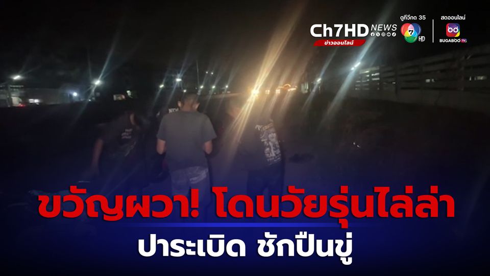 หนีตายระทึก! 2 หนุ่ม ขี่รถจยย.กำลังจะกลับบ้าน ระหว่างทางเจอกลุ่มวัยรุ่น 6 คน ขี่รถไล่ล่า ปาระเบิดใส่ ชักปืนขึ้นมาจ่อ แล้วถีบรถตกลงไปในคูข้างทาง