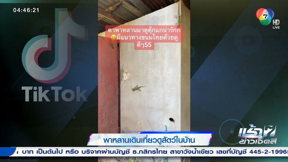 คุณตาเดินอุ้มหลานพาชมสัตว์เลี้ยงน่ารัก ที่ไม่ได้มีตัวเดียวแต่พวกพ้องเต็มไปหมดหลายตัว ยั้วเยี้ยเลยแหละ น่าจะเครือญาติเดียวกันด้วยสีเหมือนกันเลย ตุ๊กแกมีทั้งตัวเล็ก ตัวใหญ่ ทางนี้ถ้าเจอผีกับตุ๊กแก ขอหนีตุ๊กแกไปกอดผีดีกว่า แต่ตาไม่กลัวเลย