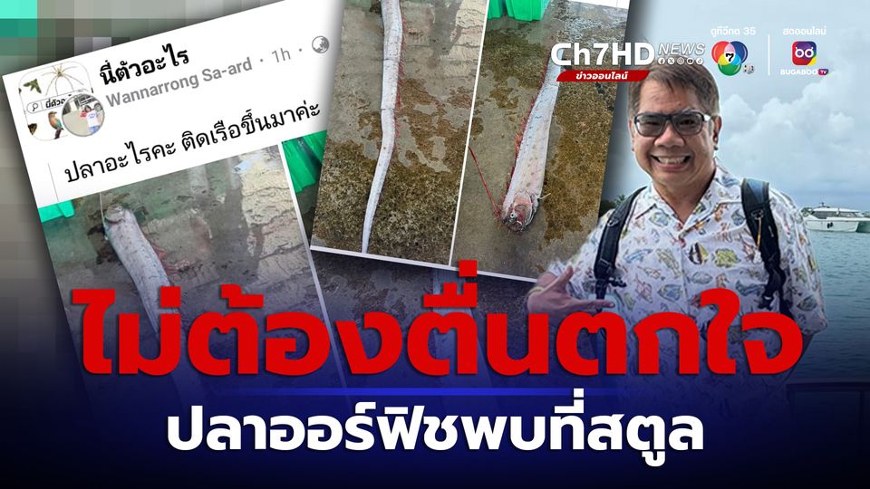 ความคืบหน้ากรณีพบปลาออร์ฟิช oarfish พบที่จังหวัดสตูล โดยปลาออร์ฟิช ตัวนี้ติดมากับเรืออวนดำ ก.เทพเจริญพร15 มาขึ้นที่อำเภอละงู จังหวัดสตูล ฝั่งทะเลอันดามัน ซึ่งปลาชนิดนี้บางคนเรียกปลาพญานาค หรือบางคนเรียกว่าเป็นปลาแผ่นดินไหว จึงทำให้เกิดกระแสตื่นตระหนก
