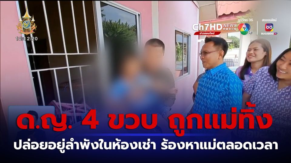 ห้องข่าวภาคเที่ยง - เจ้าหน้าที่เข้าให้การช่วยเหลือเด็กหญิงอายุ 4 ขวบ ที่ถูกทิ้งไว้ภายในบ้านพัก ที่จังหวัดชลบุรี