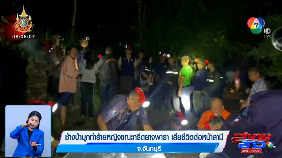 สนามข่าวเสาร์-อาทิตย์ - เกิดเหตุสลด เมื่อฝูงช้างป่าทำร้ายคนกรีดยางเสียชีวิตคาที่ต่อหน้าสามี ที่ได้แค่ยืนมองช้างกระทืบภรรยาจนสิ้นใจ