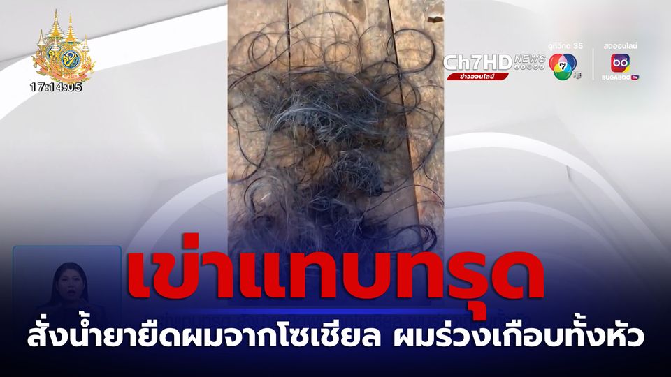เจาะประเด็นข่าว 7HD - เตือนภัยกันหน่อยคุณผู้ชม จะซื้ออะไรมาใช้กับร่างกาย ต้องดูให้ดี ๆ ไม่เช่นอาจจะเจอเหมือนเคสนี้ ซื้อน้ำยายืดผมมาในราคา 69 บาท สรุปผมร่วงจนไม่กล้าออกไปไหน ร่วงเยอะแค่ไหนให้คุณผู้ชมดู