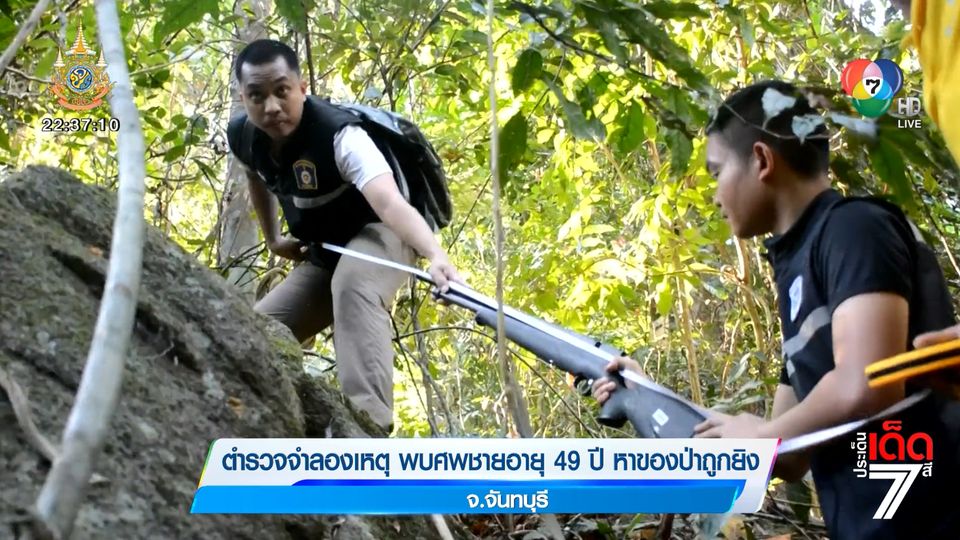 ประเด็นเด็ด 7 สี - ตำรวจจำลองเหตุการณ์ ชายอายุ 49 ปี ขึ้นไปหาของป่าบนภูเขาในจังหวัดจันทบุรี ก่อนพบเป็นศพเสียชีวิตอยู่ข้างโขดหิน ขณะที่คุมตัวเพื่อนไปสอบสวน รับสารภาพทำปืนลั่นใส่