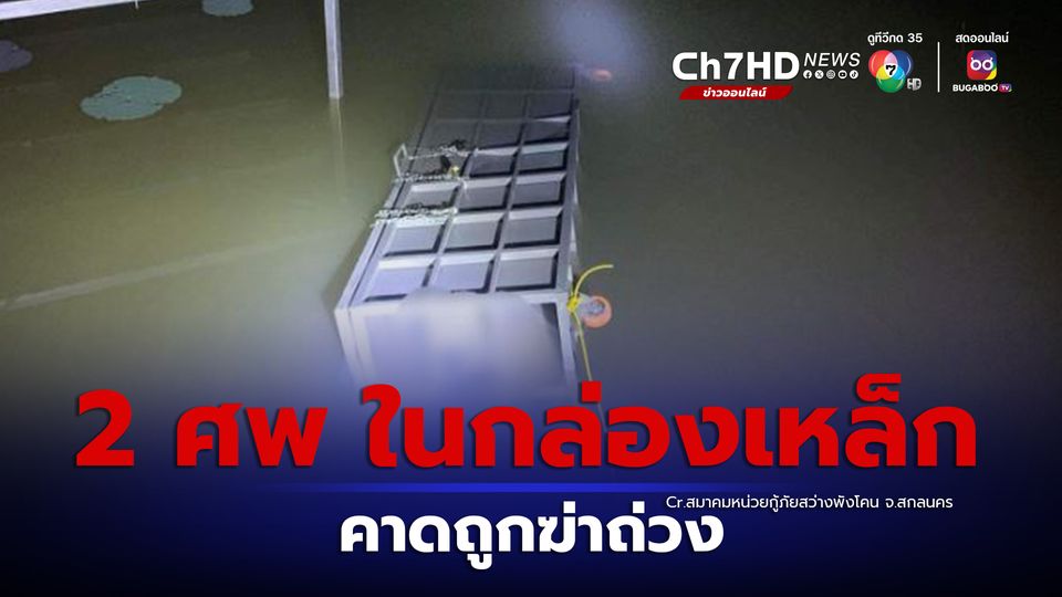 เพจสมาคมหน่วยกู้ภัยสว่างพังโคน จ.สกลนคร โพสต์ข้อมูล พร้อมรูปภาพ มีเหตุฆาตกรรมถ่วงน้ำ ที่เกิดเหตุ หนองหลุมหิน ต.พังโคน อ.พังโคน จ.สกลนคร ที่เกิดเหตุ พบกล่องเหล็ก 2 ใบ ภายในกล่องพบผู้เสียชีวิต 2 ราย ถูกบรรจุอยู่ในกล่องเหล็กคนละใบ รายที่ 1 เป็นหญิง อายุ 33 ปี รายที่ 2 เป็นชาย อายุ 68 ปี
