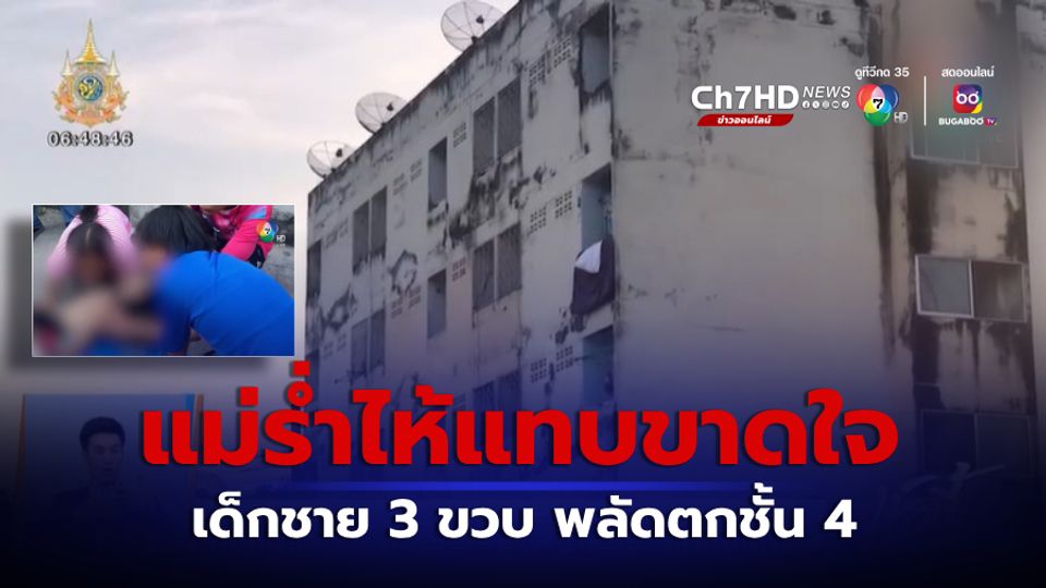 เช้านี้ที่หมอชิต - เด็กชายอายุ 3 ขวบ พลัดตกจากอาคารชั้นที่ 4 ร่างกระแทกพื้นแน่นิ่ง กู้ภัยพยายามปั๊มหัวใจ แต่สุดท้ายหนูน้อยก็เสียชีวิต