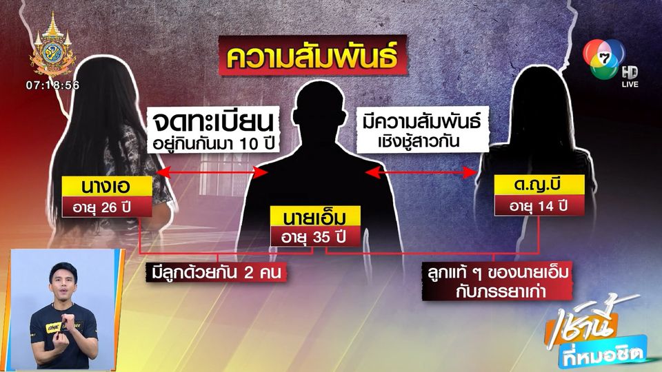 เธอ เล่าอีกว่า สามีอยู่กินกับเธอมากว่า 10 ปี มีลูก 2 คน อายุ 8 ขวบ และ 2 ขวบ ส่วนสามีเคยมีลูกกับภรรยาเก่า ซึ่งภรรยาเก่านำไปเลี้ยงเองตั้งแต่ 2 ขวบ แต่จู่ ๆ พอลูกอายุได้ 13 ปี สามีบอกอยากไปรับลูกมาเลี้ยงเอง ทั้งที่ไม่เคยติดต่อกันมากว่า 10 ปี แต่พอรับมาอยู่ได้ประมาณ 1 เดือน สามีก็เริ่มหอมแก้มลูกสาว ตนห้ามว่าอย่าทำ เพราะลูกโตเป็นสาวแล้ว สามีอ้างว่าแค่แสดงความรักตามประสาพ่อลูก จนกระทั่งจับได้ว่าสองคนนี้มีเพศสัมพันธ์กัน