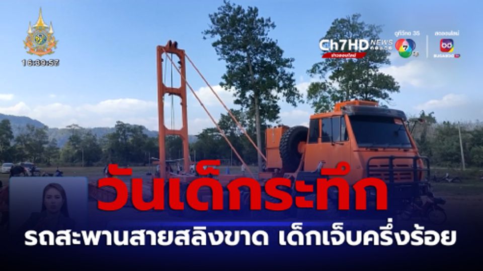 เจาะประเด็นข่าว 7HD - เกิดเหตุระทึกในงานวันเด็ก รถสะพานของหน่วยพัฒนาการเคลื่อนที่ 45 เกิดลวดสลิงขาดที่อำเภอควนโดน จังหวัดสตูล ขณะกำลังโชว์และยกเด็ก ๆ ขึ้นสูงราว 2 เมตร ทำให้เด็กได้รับบาดเจ็บเกือบ 50 คน