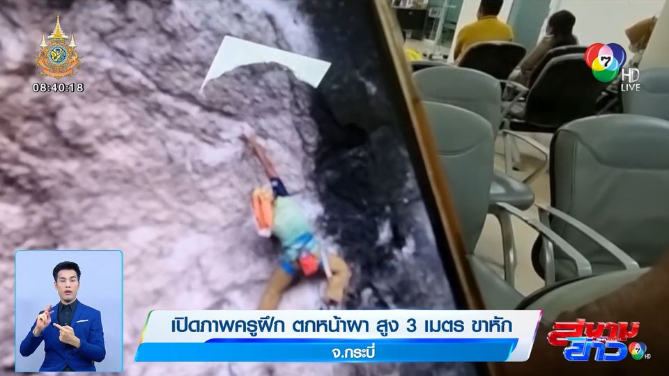 สนามข่าว 7 สี - "4 เท้ายังรู้พลาด นักปราชญ์ยังรู้พลั้ง" เหมือนกับเหตุการณ์ที่จะได้ชมต่อไปนี้ เป็นภาพของครูฝึกสอนปีนหน้าผา ที่จังหวัดกระบี่ พลัดตกหน้าผา ความสูง 3 เมตร ขณะฝึกซ้อมกับเพื่อน