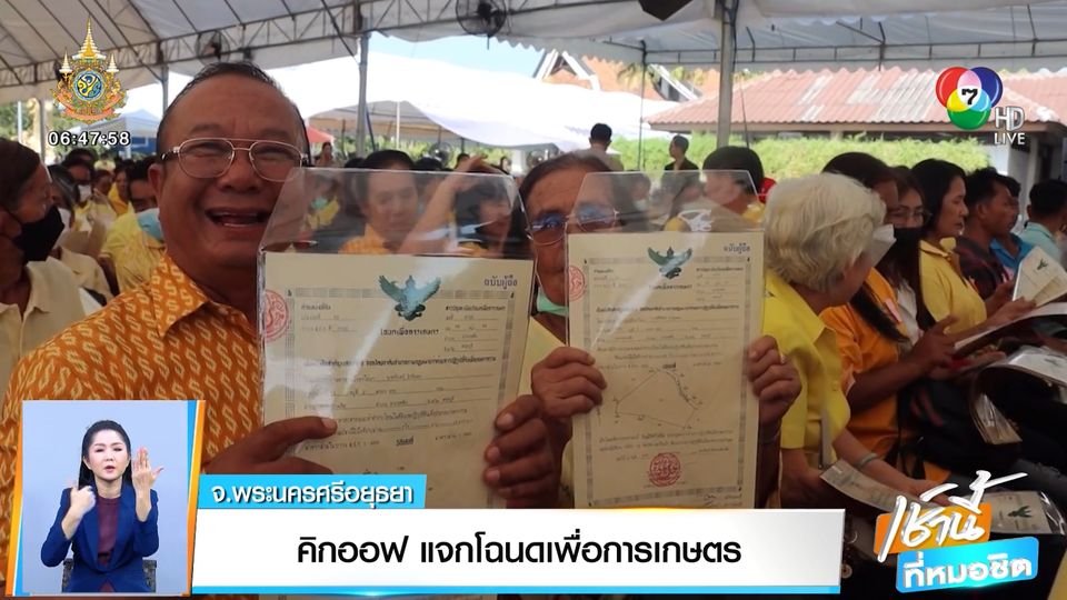 เช้านี้ที่หมอชิต - เมื่อวานเราเพิ่งนำเสนอข่าวคิกออฟแก้หนี้นอกระบบ วันนี้มีข่าวดีอีกสำหรับพี่น้องเกษตรกร โดย ร้อยเอก ธรรมนัส พรหมเผ่า รัฐมนตรีว่าการกระทรวงเกษตรและสหกรณ์ นำทีม คิกออฟแจกโฉนด ส.ป.ก. 25,000 ฉบับ ครอบคลุมพื้นที่ 22 ล้านไร่ เพื่อให้นำเอกสารไปใช้ประโยชน์ สร้างมูลค่าเพิ่มได้