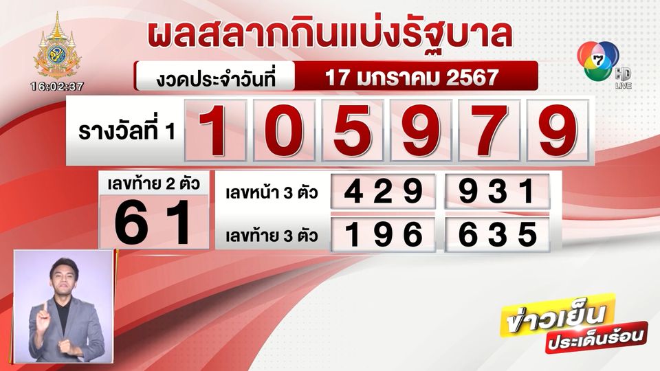 ผลสลากกินแบ่งรัฐบาล งวดประจำวันที่ 17 มกราคม 2567