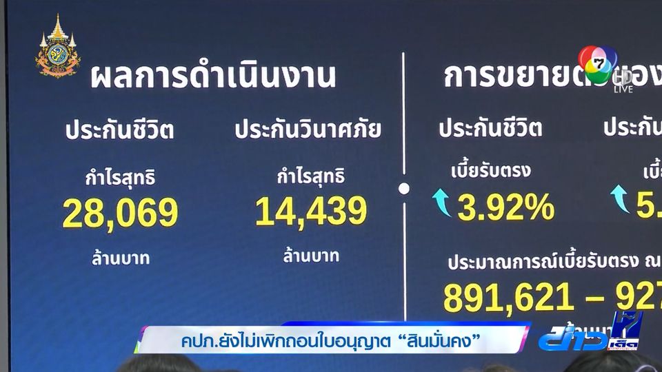 ข่าวเด็ด 7 สี - เลขาธิการ คปภ. ยืนยันว่า ยังไม่ได้เพิกถอนใบอนุญาตบริษัทสินมั่นคง ในขณะนี้ จึงถือว่า ยังมีสถานะเป็นบริษัทประกันภัย เพียงแค่ให้ยุติการรับทำประกันภัยทุกประเภท เท่านั้น