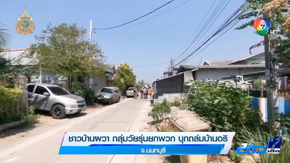 ข่าวเด็ด 7 สี - จากกรณีโลกออนไลน์ มีการแชร์ภาพจากกล้องวงจรปิดกลุ่มวัยรุ่นขี่รถจักรยานยนต์นับสิบคัน บนถนนท้าทายคู่อริที่อยู่ในบ้านให้ออกมา แล้วก็บุกเข้าไปใหม่ใช้มีดฟันกระจกหน้าต่างเสียหาย