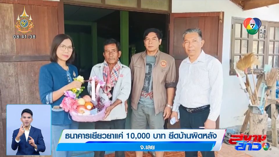 สนามข่าว 7 สี - ความคืบหน้ากรณีหญิงอายุ 67 ปี ในอำเภอเมืองเลย ร้องเรียนว่า ถูกธนาคารยึดบ้านผิดหลังทำให้เกิดความกังวลใจอย่างมาก กระทั่งล่าสุดทางธนาคารยอมรับว่ายึดบ้านผิดหลังจริง และได้ถอนการยึดบ้านแล้ว พร้อมนำเงินจ่ายค่าชดเชยผู้เสียหาย 10,000 บาท