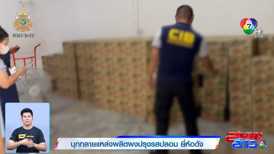 สนามข่าว 7 สี - บุกทลายแหล่งปลอมผงปรุงรส ยี่ห้อดัง 3 จุด พร้อมรวบ ผู้ต้องหา 5 คน และของกลาง กว่า 30,000 ซอง มูลค่ากว่า 2 ล้านบาท