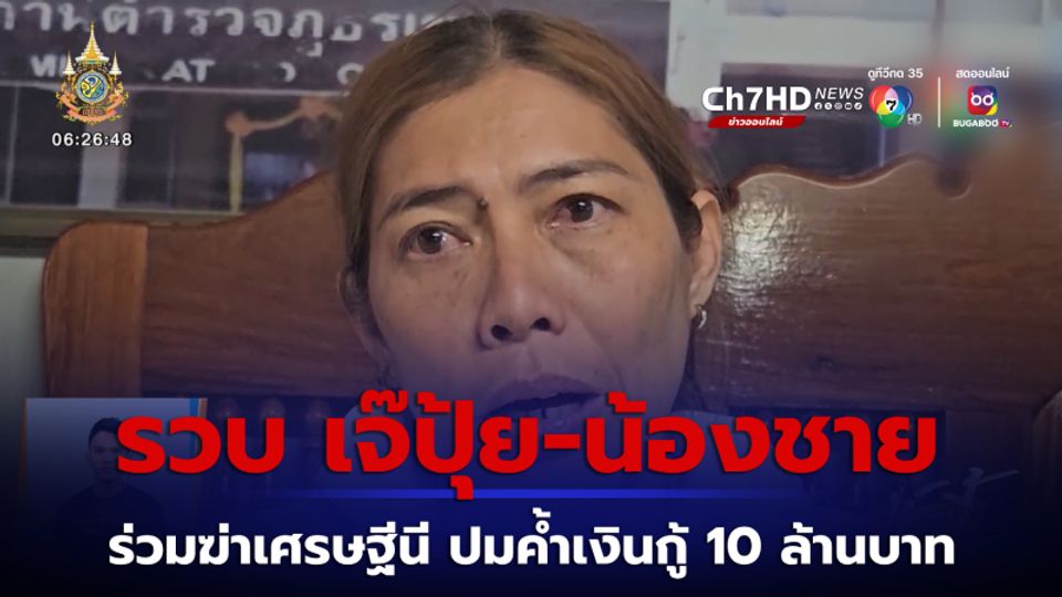 เช้านี้ที่หมอชิต - กรณี "เจ๊ม่วย" เศรษฐีนีเงินกู้ในจังหวัดจันทบุรี ถูกฆ่าทิ้งสระน้ำล่าสุดเมื่อวานนี้ ตำรวจตามจับ "เจ๊ปุ้ย" ผู้ต้องสงสัยได้แล้วขณะอยู่ชายแดนไทย-ลาว อ้างไปปฏิบัติธรรม เจ้าตัวซัดทอดว่าน้องชายเป็นคนลงมือฆ่า จากปมถูกทวงเงินค่าค้ำประกันเงินกู้นับ 10 ล้านบาท แต่น้องชายบอกว่า เจ๊ปุ้ย นั่นแหละคือมือฆ่าเจ๊ม่วย
