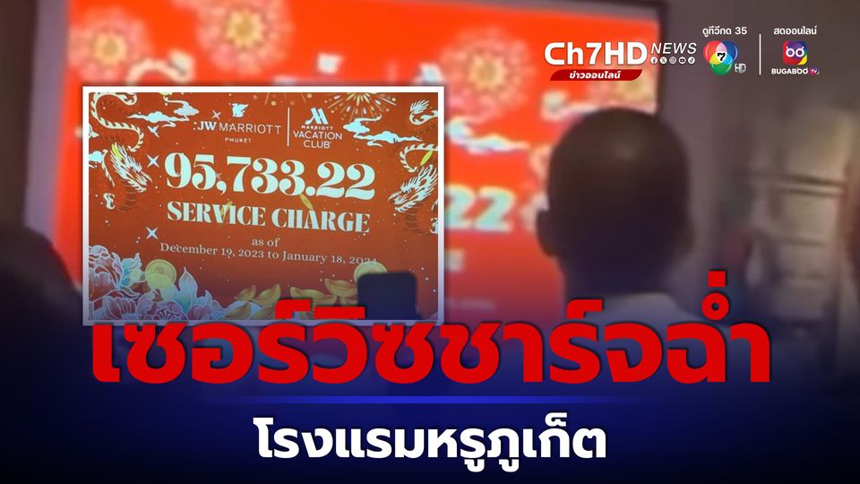 เพจเฟซบุ๊ก ศูนย์ข้อมูลภูเก็ต Phuket Info Cente เผยแพร่คลิปวิดีโอวินาทีประกาศ เซอร์วิซชาร์จ ของ โรงแรม JW Marriott Phuket และ Marriott Vacation Club ที่ปีนี้ได้รับเงินกันไปมากถึง คนละ 95,733.22 บาท ทำเอาพนักงานเฮลั่น ส่งเสียงกรี๊ดด้วยความดีใจ