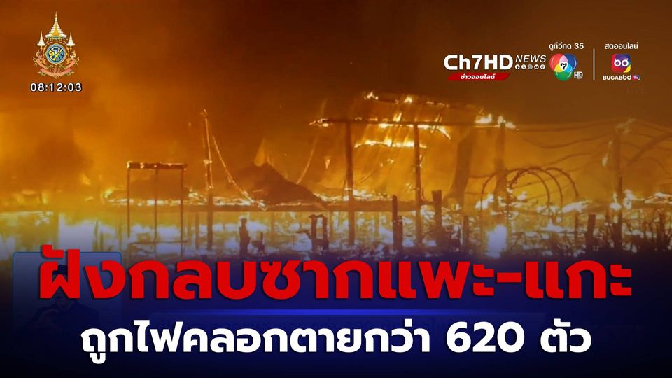 สนามข่าว 7 สี - เจ้าของฟาร์มแพะและแกะนำเข้าจากต่างประเทศรายใหญ่ในพื้นที่จังหวัดสุรินทร์ ยืนดูซากทั้งน้ำตา หลังเพลิงไหม้สาเหตุจากไฟฟ้าลัดวงจร และถูกไฟคลอกตายกว่า 620 ตัว มูลค่าความเสียหาย 25-30 ล้านบาท