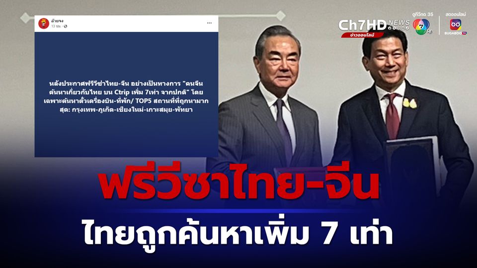 ล่าสุด วันนี้ (29 ม.ค.67) เพจอ้ายจง ได้เผยข้อมูล ระบุว่า หลังประกาศฟรีวีซาไทย-จีน อย่างเป็นทางการ "คนจีนค้นหาเกี่ยวกับไทย บน Ctrip เพิ่ม 7 เท่า จากปกติ" โดยเฉพาะค้นหาตั๋วเครื่องบิน-ที่พัก