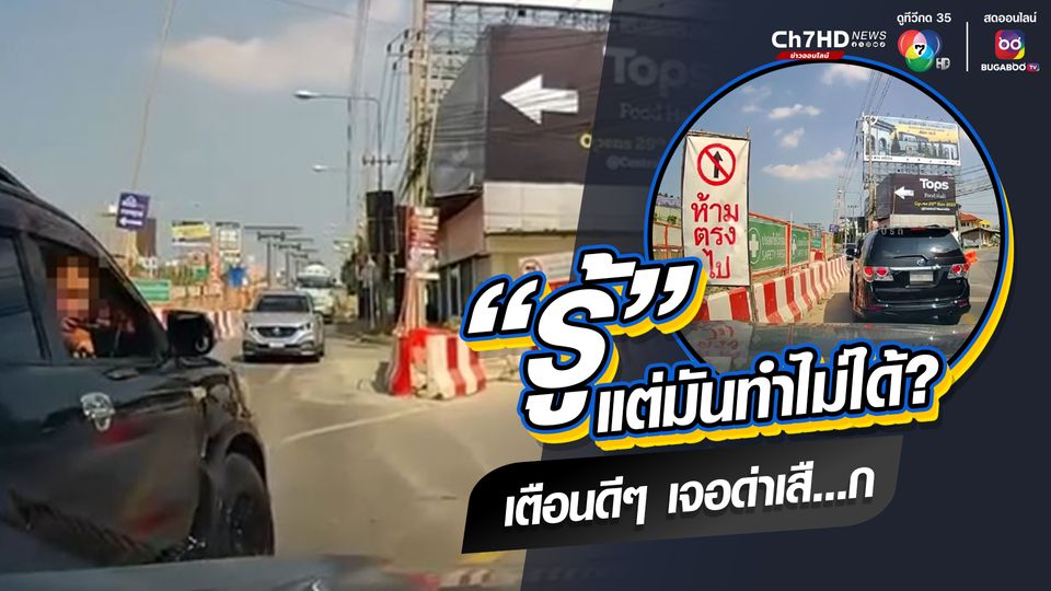 โดยบริเวณดังกล่าว มีป้าย "ห้ามตรงไป" ตั้งบอกเอาไว้อย่างชัดเจน เนื่องจากจะมีรถคันอื่นสวนมา แต่ชายคนขับรถคันดังกล่าว กลับไม่สนป้ายห้าม เจ้าของคลิปจึงขับไปเตือน แต่ชายคนดังกล่าว กลับตอบมาว่า "รู้" เมื่อถามต่อว่า "รู้แล้วยังจะเลี้ยวเหรอ" ชายคนดังกล่าวก็ได้สวนว่า "เสื...ก อะไร" เมื่อได้ยินคำตอบแล้ว เจ้าของคลิปถึงกับเหนื่อยใจ