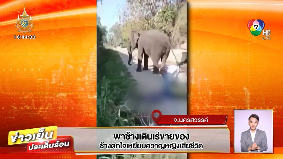 ข่าวเย็นประเด็นร้อน - คนเลี้ยงช้างพาช้างแม่ลูก เร่ขายของจากบุรีรัมย์มาจนถึงนครสวรรค์ ระหว่างทางช้างตกใจ ชนคนเลี้ยงก่อนเหยียบซ้ำ เสียชีวิต