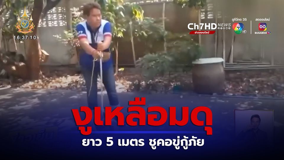 งูเหลือมดุ ยาว 5 เมตร ชูคอขู่กู้ภัย
