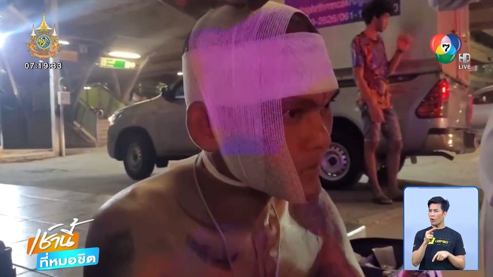 เช้านี้ที่หมอชิต - หนุ่มอายุ 40 ปี สุดงง นั่งกินข้าวอยู่หน้าบ้านพัก จู่ ๆ มีคนปั่นจักรยานมาถามหาคนชื่อ "หน่อง" พอบอกไม่รู้จัก ก็ใช้มีดฟันกบาลกลางวงข้าว จนบาดเจ็บเลือดอาบ