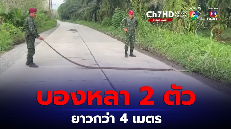งูจงอาง 2 ตัวใหญ่ โผล่กลางสวน “นครศรีธรรมราช” ทหารตระครุบได้ เหลือเชื่อยาว 4.37 เมตรเท่ากันทั้งคู่