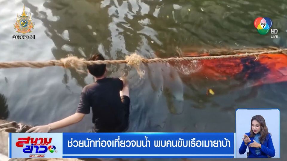 สนามข่าวเสาร์-อาทิตย์ - มีนักท่องเที่ยวไปใช้บริการเรือโดยสารในคลองบางกอกน้อย แล้วเรือโดยสารเกิดพลิกคว่ำ ทำให้ผู้โดยสารจมน้ำ เคราะห์ดีชาวบ้านช่วยชีวิตไว้ได้ แต่คนขับเรือ จู่ ๆ หายตัวไป ชาวบ้านบอกว่าน่าจะเมายาบ้า ก่อนที่ตำรวจจะไปตามจับกุมตัวมาได้