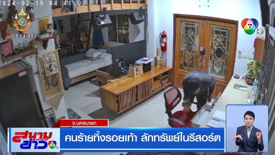 สนามข่าว 7 สี - คนร้ายย่องเบา เดินผ่านแม่บ้านที่นอนเฝ้ารีสอร์ต รื้อค้นทรัพย์สิน ได้โทรศัพท์มือถือและเงินสดหลายพันบาท ตำรวจพบหลักฐานเป็นลายนิ้วมือแฝงและรอยเท้า ที่ปีนเข้าทางหน้าต่าง