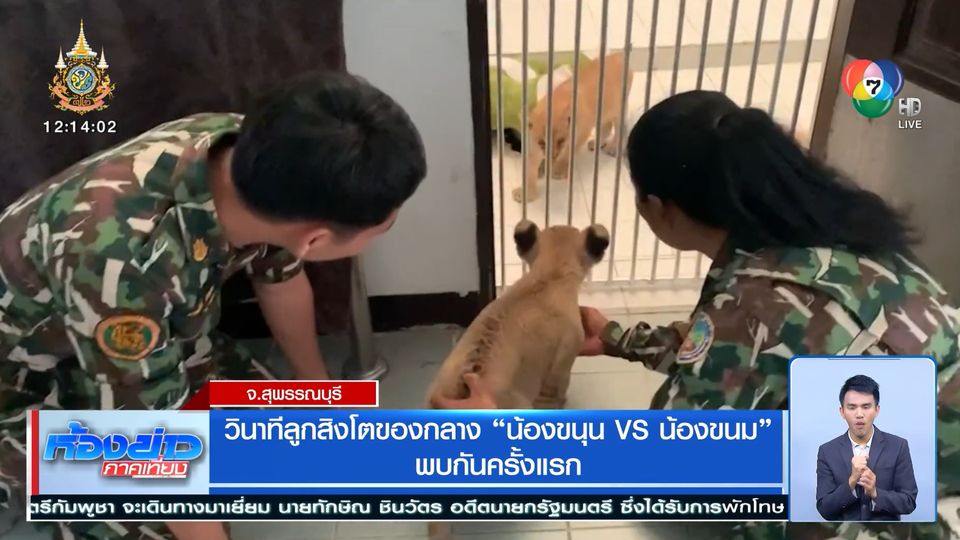 ห้องข่าวภาคเที่ยง - ยังจำลูกสิงโตของกลาง "น้องขนุน" ที่ถูกจับกุมยึดจากหญิงชาวจีนที่จังหวัดภูเก็ต ได้ไหม ล่าสุดก็อยู่ในความดูแลของเจ้าหน้าที่ แถมมีเพื่อนใหม่ ชื่อ "น้องขนม" จะเข้ากันดีหรือไม่ ไปชมพร้อม ๆ กัน