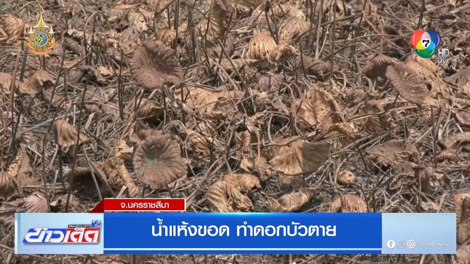 ข่าวเด็ด 7 สี - เป็นสภาพน้ำแห้งขอด ในลำห้วยบ้านท่าหลวง อำเภอพิมาย จังหวัดนครราชสีมา ที่รับน้ำต่อมาจากลำน้ำมูล ซึ่งเป็นหนึ่งในหลายจุดที่ระดับน้ำลดลงอย่างต่อเนื่อง จนส่งผลกระทบต่อการใช้ชีวิตของชาวบ้าน และเกษตรกร โดยเฉพาะนาบัว ที่ต้องเหี่ยวเฉาตายจนหมด ชาวบ้านไม่สามารถเก็บดอกบัวไปจำหน่ายในวันมาฆบูชาได้ ทำให้ขาดรายได้ และขาดแคลนน้ำใช้ จนชาวบ้านมองว่าปีนี้ภัยแล้งมาเร็ว ขณะที่ยังมีเกษตรกรบางรายสูบน้ำในลำสาขาไปทำนาปรัง ยิ่งทำให้ขาดแคลนน้ำใช้ ชาวบ้านส่วนใหญ่จึงพากันได้รับความเดือดร้อนอย่างมาก