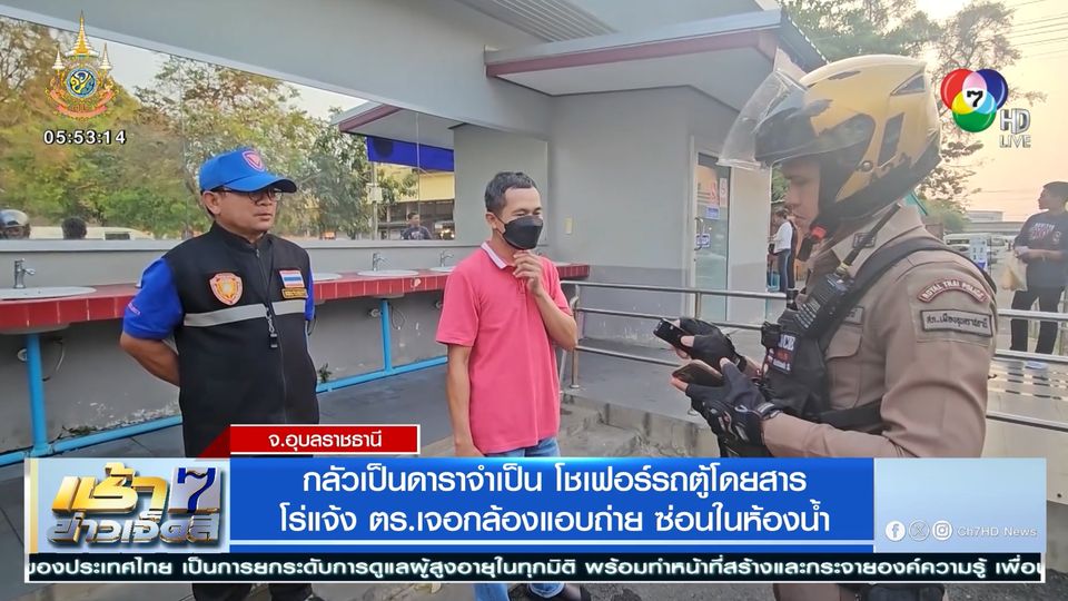 พี่เสื้อแดงเขา บอกว่า เห็นครั้งแรกวันที่ 11 กุมภาพันธ์ ตอนช่วงค่ำ ๆ ก็ไปแจ้งเจ้าหน้าที่ของท่ารถขนส่งเอาไว้ พอมาใช้ห้องน้ำอีกครั้งก็ไม่เห็นกล้องอยู่แล้ว จนมาครั้งล่าสุดครั้งนี้กล้องมันกลับมาตั้งอยู่แบบเดิมอีก คราวนี้ก็เลยต้องใช้ไม้เขี่ยลงมา และแจ้งเจ้าหน้าที่ตำรวจมายึดไปตรวจสอบหาเบาะแสของมือดีที่นำไปวางเอาไว้ พี่เขายังฝากเตือนการใช้ห้องน้ำสาธารณะ ดูให้ดี ๆ เดี๋ยวจะกลายเป็นดาราไปโดยไม่รู้ตัว