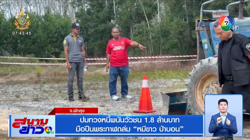 สนามข่าว 7 สี - ที่ จังหวัดพัทลุง ตำรวจระดมกำลังไปคลี่คลายคดีอุกฉกรรจ์ มือปืนมืออาชีพระดับพระกาฬ พร้อมอาวุธปืนสงคราม บุกยิงถล่ม "หมีขาว ป่าบอน" ผู้กว้างขวาง เสียชีวิตคาที่ ญาติเผยปมเหตุจากไปทวงหนี้พนันวัวชนให้พรรคพวก จำนวน 1.8 ล้านบาท จากคนสนิทนักการเมือง ก่อนถูกขู่อาฆาต ล่าสุด พบเบาะแสคนนำทาง คนชี้เป้า และรถที่ใช้ก่อเหตุแล้ว