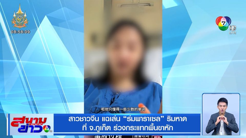 สนามข่าว 7 สี - ดรามาปมอปป้าฮง ยูทูบเบอร์ชาวเกาหลีที่ไปเที่ยวจังหวัดพระนครศรีอยุธยา แล้วถูกเก็บค่าบริการรถตุ๊ก ๆ แพง กระแสยังไม่ทันจาง ล่าสุดมีดรามาซ้ำอีก เมื่อสาวชาวจีน ออกมาแฉว่าเล่นพาราเซลลิง (Parasailing) ที่จังหวัดภูเก็ต ร่วงลงมาขาหัก สะท้อนมาตรฐานความปลอดภัยของเครื่องเล่นที่นำให้นักท่องเที่ยว เช่าใช้บริการ