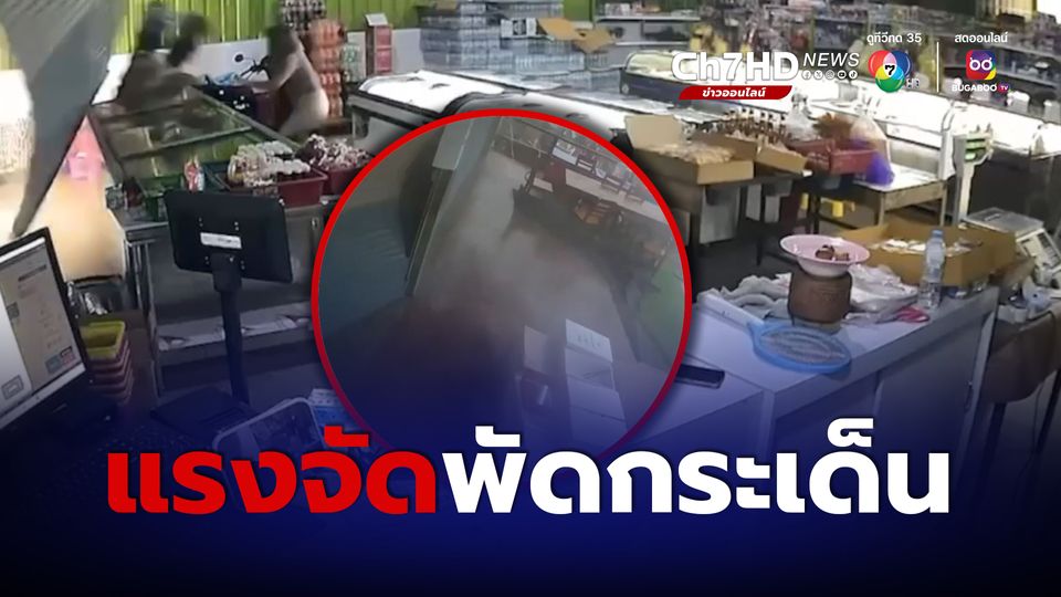 น.ส.กัลยาณี ชาปิตุ เจ้าของร้าน กล่าวว่า ในภาพแสดงให้เห็นถึงความแรงของพายุที่โหมกระหน่ำบริเวณนี้พอดี ซึ่งเป็นเส้นทางผ่านของพายุทำให้ประตูเหล็กม้วน จำนวน 2 บาน ของร้านนั้น โก่งและกระแทกให้คนกระเด็นกระดอนเข้าไปในตัวอาคาร และในภาพที่เห็นจะเป็นคนงานของร้านจำนวน 1 คน ที่ไปยืนกันเพื่อทานแรงลม แต่ไม่สามารถทานแรงลมได้ ลมพายุได้พัดประตูเหล็ก และทำให้คนกระเด็นไปกว่า 3 เมตร ส่วนในร้านได้รับความเสียหาย ตู้แช่แตกไป 1 ตู้ ในส่วนของประตูและสินค้าในร้านเสียหายเล็กน้อย