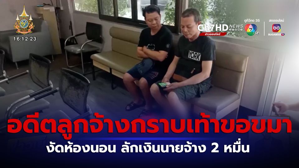 นายจักราวุธ หรือ บัง อายุ 36 ปี ก้มกราบเท้านายไกรทอง อายุ 62 ปี หรือ เจ๊ไก่ เจ้าของร้านส้มตำชื่อดังในเมืองอุดรธานี ซึ่งเป็นอดีตนายจ้าง หลังก่อเหตุงัดห้องนอนเข้าไปลักเงิน 20,000 บาท โดยมีกล้องวงจรปิดบันทึกภาพไว้เป็นหลักฐาน ซึ่งนายจักราวุธ ถูกจับได้ที่ห้องเช่าแห่งหนึ่ง ในตำบลหนองบัว นายจักราวุธ บอกว่า ที่ต้องลักเงินนายจ้างที่มีพระคุณ เพราะเอาเงินไปเล่นพนันออนไลน์และซื้อยาบ้าเสพ