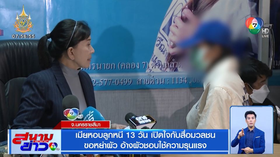 สนามข่าว 7 สี - ความรุนแรงในครอบครัว มีให้เราเห็นอยู่บ่อยครั้ง อย่างกรณีภรรยาหอบลูกสาวอายุ 5 ขวบ หนีออกจากบ้านที่โคราช สุดท้ายปัญหาฝ่ายหญิงก็อ้างว่ามาจากความรุนแรง เธอบอกทำกับเธอไม่เท่าไหร่ แต่ทำต่อหน้าลูก หัวอกคนเป็นแม่รับไม่ได้ ขอหย่าขาดกันแต่เพียงเท่านี้