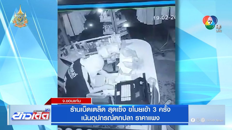 ข่าวเด็ด 7 สี - ไปที่อำเภอพล จังหวัดขอนแก่น กล้องวงจรปิด ร้านจำหน่ายสินค้าเบ็ดเตล็ด และอุปกรณ์ตกปลาแห่งหนึ่ง บันทึกภาพคนร้าย ชาย 2 คน เข้าไปในร้าน แล้วเลือกเสื้อที่แขวนบนราว จากนั้นไปขโมยเงินในเครื่องเก็บเงิน และอุปกรณ์ตกปลา ก่อนออกไปจากร้าน ขี่รถจักรยานยนต์พ่วงข้างหลบหนี
