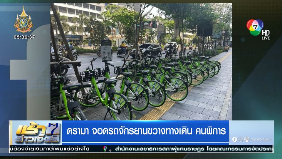 เช้าข่าว 7 สี - โซเชียลแชร์ภาพ จุดจอดจักรยานให้เช่าของ กทม.ไปทับ "เบรลล์บล็อก" สัญลักษณ์ของคนตาบอด ที่อยู่บนทางเท้า ย่านสีลม ทำให้หลายคนเป็นห่วงความปลอดภัยในการสัญจรของผู้พิการ หากต้องเดินผ่านจุดดังกล่าว